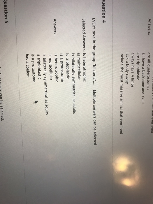 Solved Answers Are All Dueterostomes All Have A Backbone Chegg Com