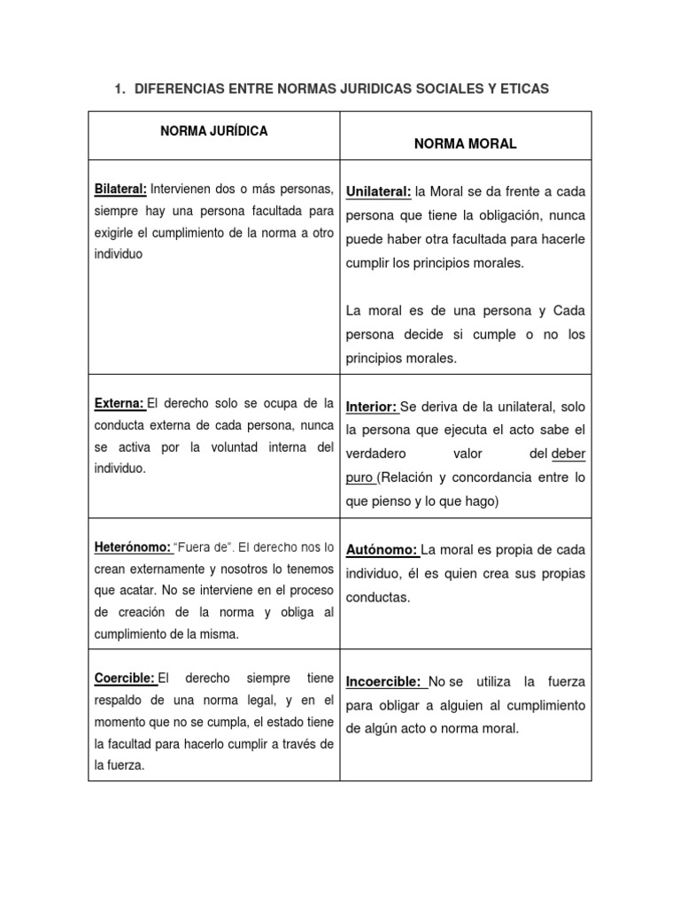 Normas Juridicas Morales Y Sociales Cuadro Comparativo