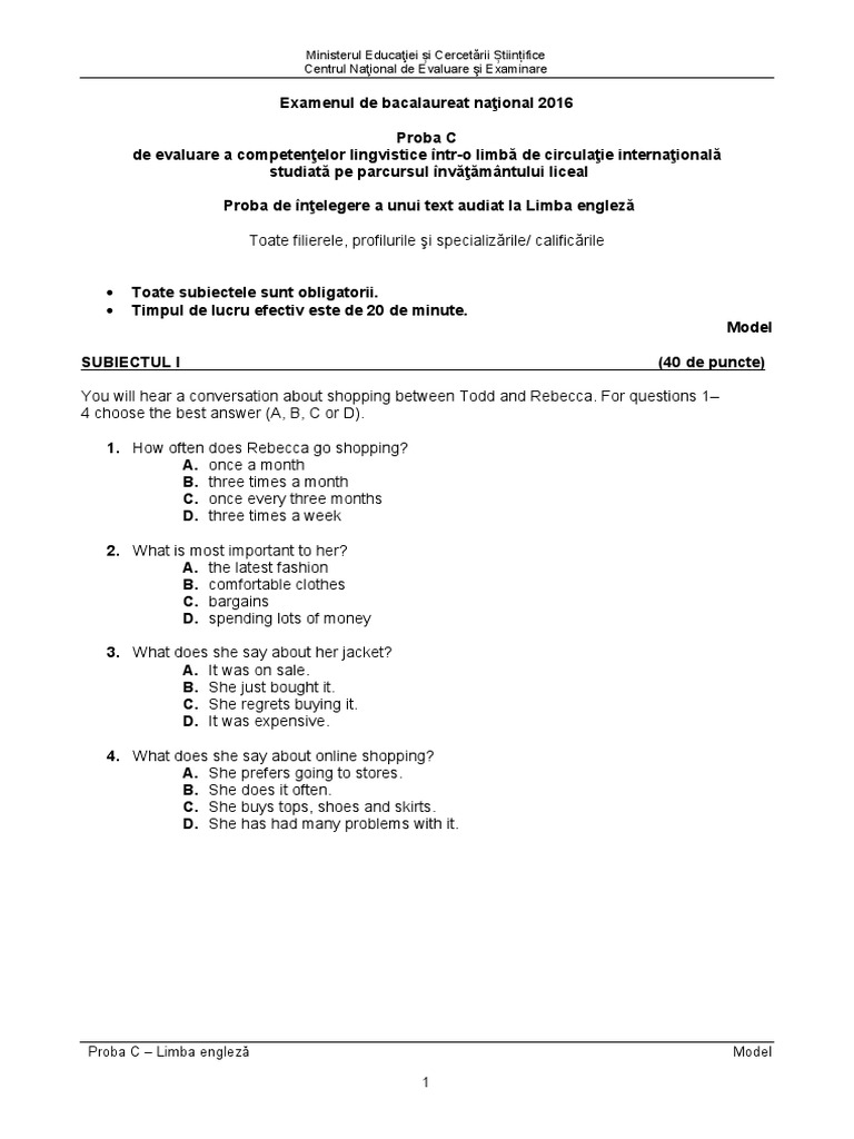 C Limba Engleza Audio Text 2016 Model Subiect