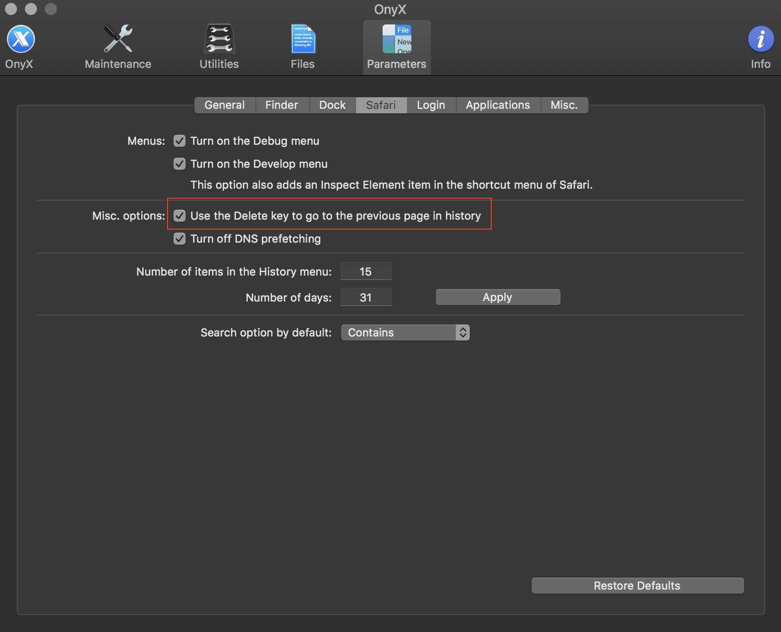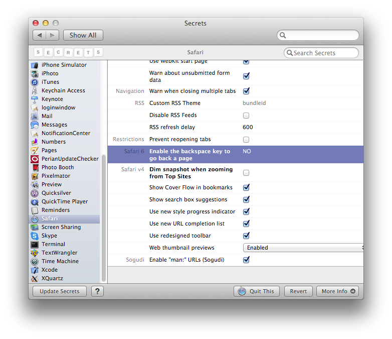 Re Enable The Delete Key Page Back In Safari 6 Defaults Write Com