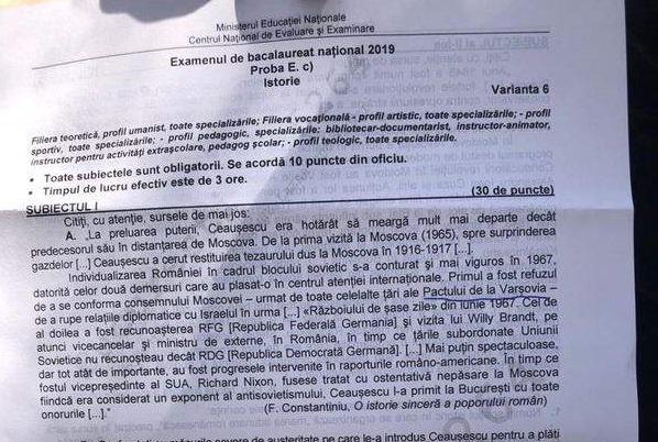 Subiecte Istorie Bac 2019 Edu Ro Vezi Pe A1 Ro Ce A Picat La