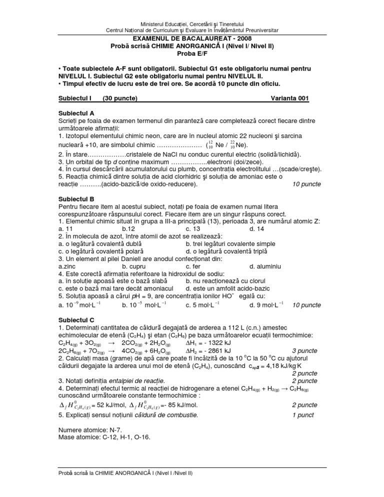 Pdf Examenul De Bacalaureat 2008 Probă Scrisă La Chimie Organică I Nivel I Nivel Ii Proba E F Golomoz Alexandra Academia Edu