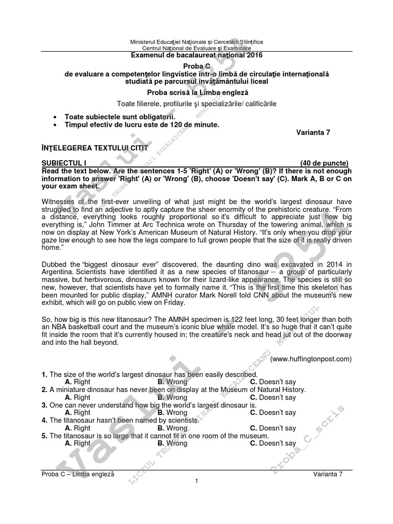 Subiecte Bac 2016 Subiecte La Proba De Competenţe Lingvistice