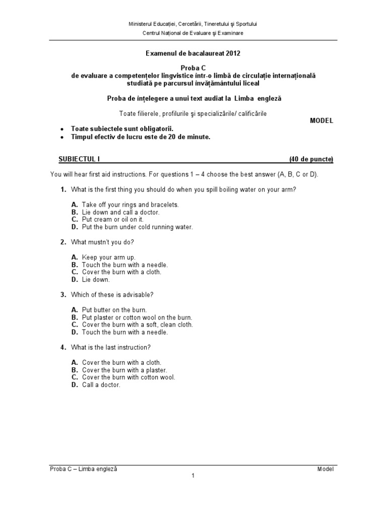 Modele De Subiecte Bacalaureat 2012 Proba C Audio Text Competente