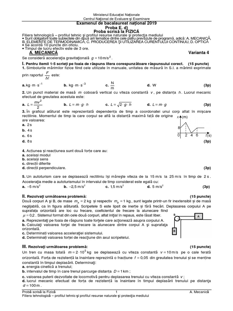 Bacalaureat 2019 Modele De Subiecte La Fizică Sparknews Ro