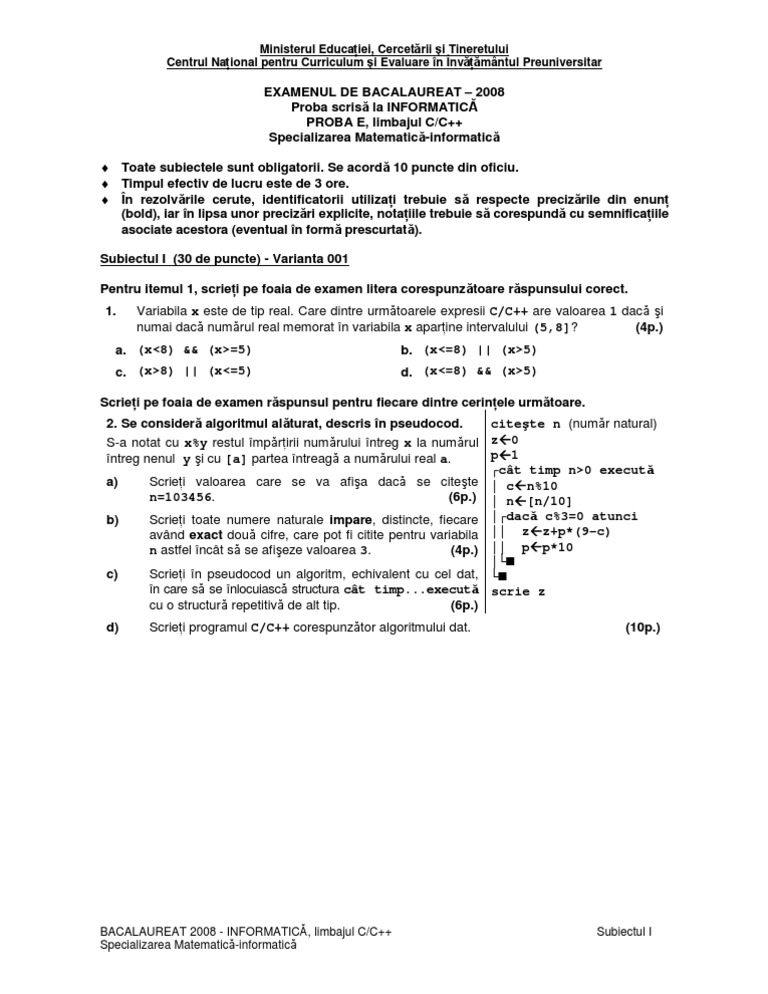 Bacalaureat 2009 Informatica Intensiv Pascal C C Procarti Ro