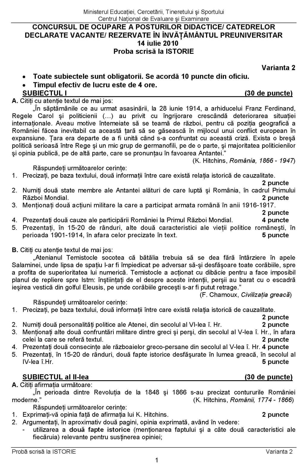 Subiecte Istorie Bac 2016 Baremul Si Subiectele La Istorie Bac 2016