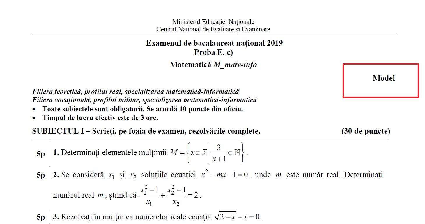 Bacalaureat 2019 Modele Subiecte Matematică Mate Info