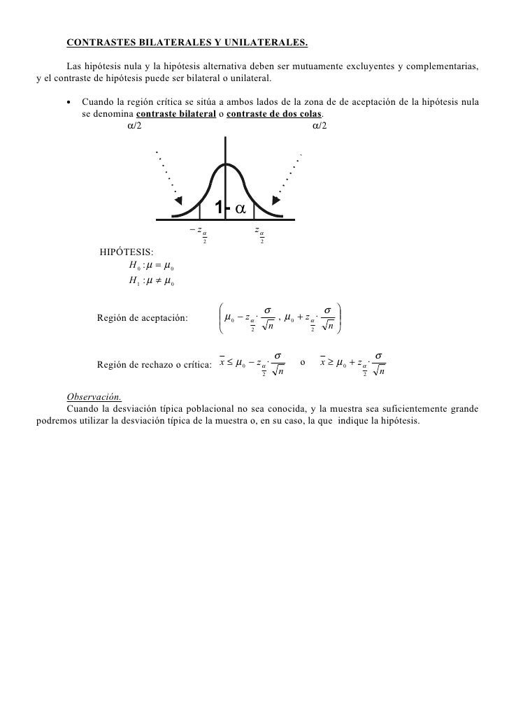 Contraste De Hipotesis Bilateral Y Unilateral