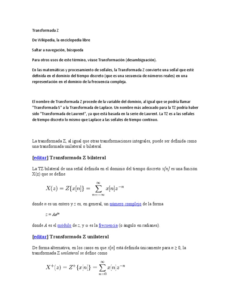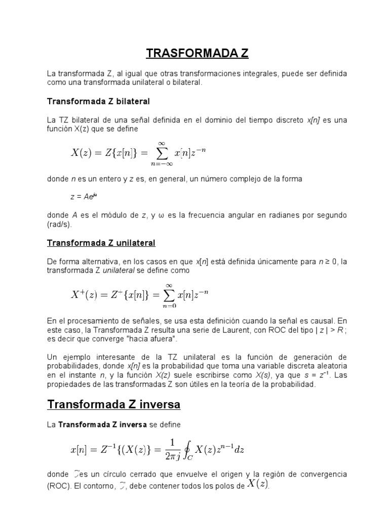 Trasformada Z Objetos Matematicos Fisica Y Matematicas